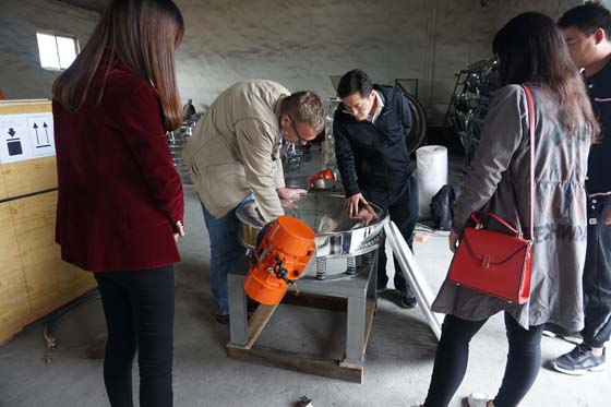 2017年10月10日,德國(guó)客戶朋友協(xié)同翻譯來我公司實(shí)地參觀考察‘大漢牌’ZPS系列直排式振動(dòng)篩。