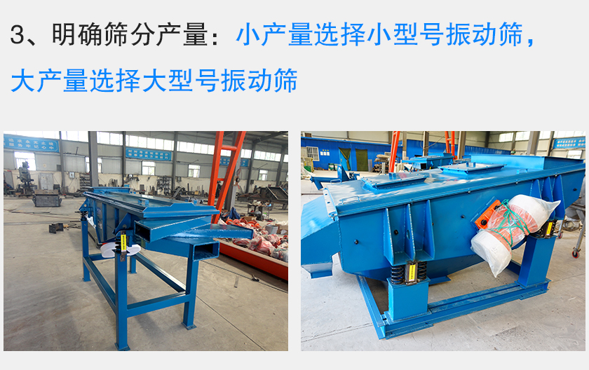 用戶對(duì)于振動(dòng)篩類型已經(jīng)有了充分的把握,那么接下來就是振動(dòng)篩型號(hào)的選擇,而與型號(hào)相關(guān)的數(shù)據(jù)就是產(chǎn)量了,所以需要用戶告知篩分產(chǎn)量,從而確定振動(dòng)篩型號(hào)。