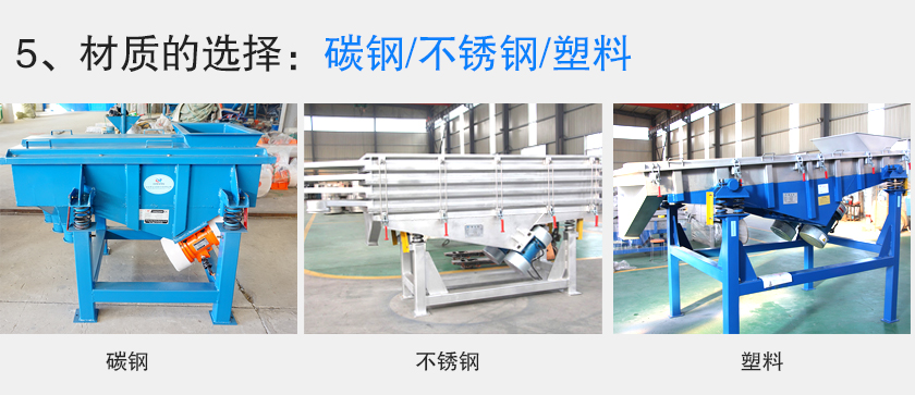 振動(dòng)篩材質(zhì)主要由碳鋼與不銹鋼兩種,但是特殊情況下,還有塑料材質(zhì),在挑選振動(dòng)篩時(shí),振動(dòng)篩材質(zhì)也是主要的參考數(shù)據(jù)之一。